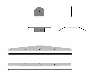 Figure 4: The grey strips in the figure are made from 1.5 or 2 mm brass. The strips will eventually go under the leaf springs which keep the ground glass frame in place in the film holder seat. Three holes are drilled in the brass strips, two for the screws attaching the strips to the ground glass holder, the third in the middle for the mechanism which holds the ground glass in place.