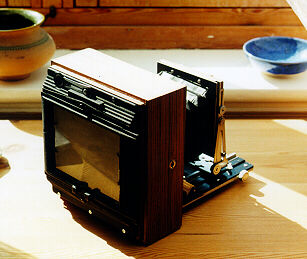 In 1998 I bought a Crown Graphic parts camera on eBay for USD 23 plus shipping. The external hardware and the leather/leatherette had been stripped off. The front panel and lens board were missing and so was the back. The bellows and focusing bed were in good shape, however. On another auction on eBay I bought a Graphic springback. I thus had most of the basic parts for making a neat field camera for backpacking.