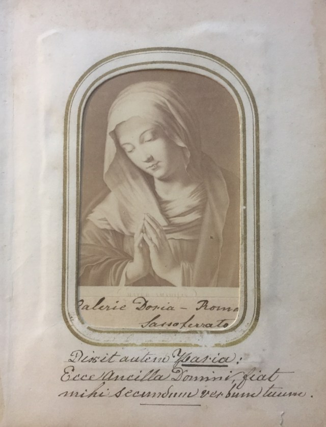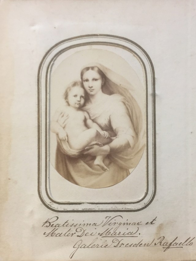 Siste biletet er Rafaels «Madonna della seggiola», Madonna i stolen, i Palazzo Pitti i Firenze: «O, dulcissimo cuor’ Mariae, Refugium peccatoris sit semper mecum, nunc et in hora mortuis _ Amen _ Ferd. Al. Grob.» Teksten er ei bøn om at Maria må vere hans vern og alltid følgje han, no og i dødens time.