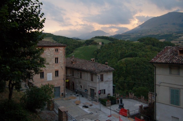 Huset eg bur i, er frå 1500-talet. Oppussa og moderne. Om vinteren står det tomt, liksom mange andre hus her i landsbyen. Montefortino er nesten folketom om vinteren. Rundt hundre menneske bur det her vinterstid, fortel Maria Grazia, biletkunstnar frå Roma, som er her for å måle og skrive, og for å søkje tilbake til landskapet der morsslekta kom frå.