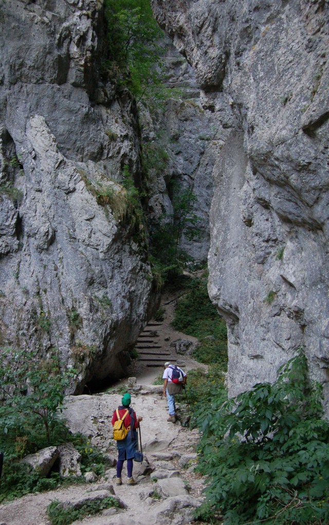Vi skal til Helvetesgjelet, la Gola dell’Infernaccio. Gjelet går mellom Monte Sibilla og Monte Priora, i botnen renn elva Tenna. I gamle dagar var dette ein ferdselsveg mellom fjella, fortel Agostino. Knappe tre meter breie er dei smalaste bergpassa. Det er motbakkar og medbakkar, høgdeskilnaden er 440 meter. Til vanleg kan ein gå her utan å møte eit menneske, men i dag, dagen etter «ferragosto», festdagen midt i august, er det folksamt. Vi møter enda til eit par terrengsyklar i den mest kronglete bakken.