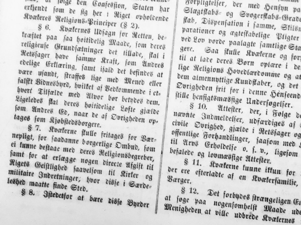 Framlegget i 1818 om å frita kvekarar for militærteneste. Storthings-Efterretninger 1814–1833, I, Christiania 1874, s. 558–61