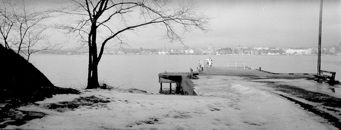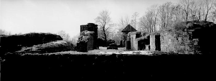 The pictures below are some of the pictures I took on my first roll with the modified Stretch 35 camera one day in February 1991. The picture above was taken in the Oslo Botanical Garden, those below on an island with ruins of an old Cistercian monastery in Oslo. The prints are approximately 9 x 23 cm.