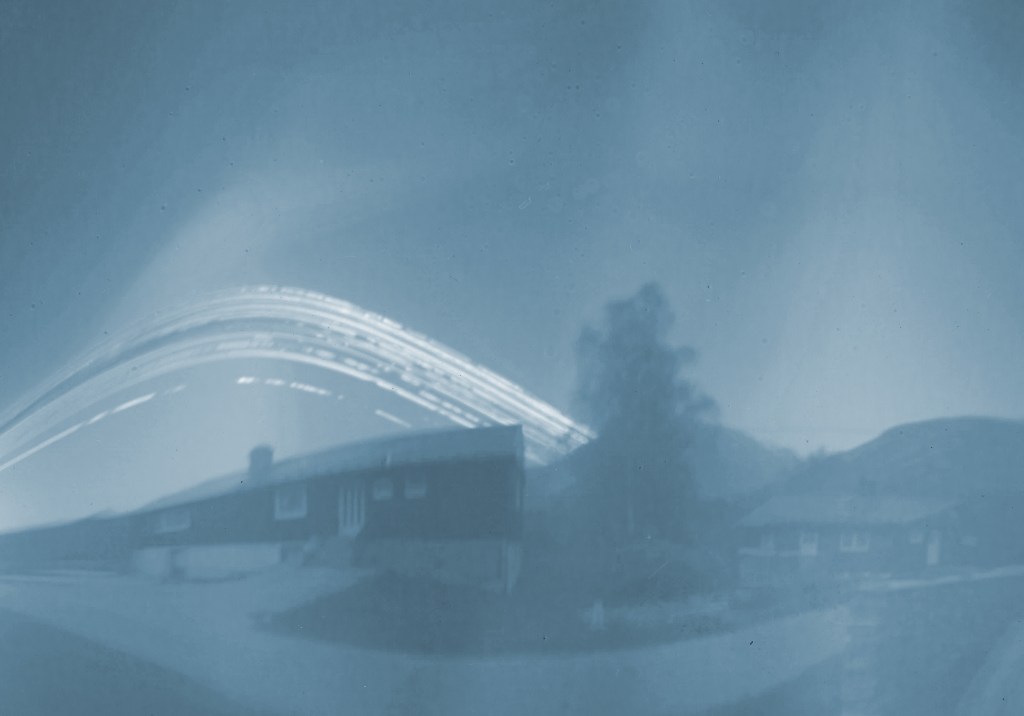 A solargraph is a photo of the sun’s path across the sky, made with a pinhole camera and black-and-white photographic paper. The image is “burned” into the paper and is not developed chemically but scanned in a semi-dark room. The negative image is then flipped horizontally and inverted into a positive image, and contrast and colors can be adjusted. These solargraphs were made in 2024. The photographic paper was Ilford Multigrade RC Pearl. The cameras were half liter drink cans with pinhole diameters around 0.3 mm. Exposure times were two to three months.